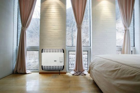 Подача внешнего воздуха и вывод отработанных газов осуществляется через телескопическую коаксиальную трубу, что исключает необходимость в дымоходе. Для установки достаточно прокинуть эту трубу через стену и подключить газ.